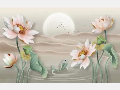 Фотообои Лотос с рыбками 3Д ( 25083 )Стоимость зависит от размеров