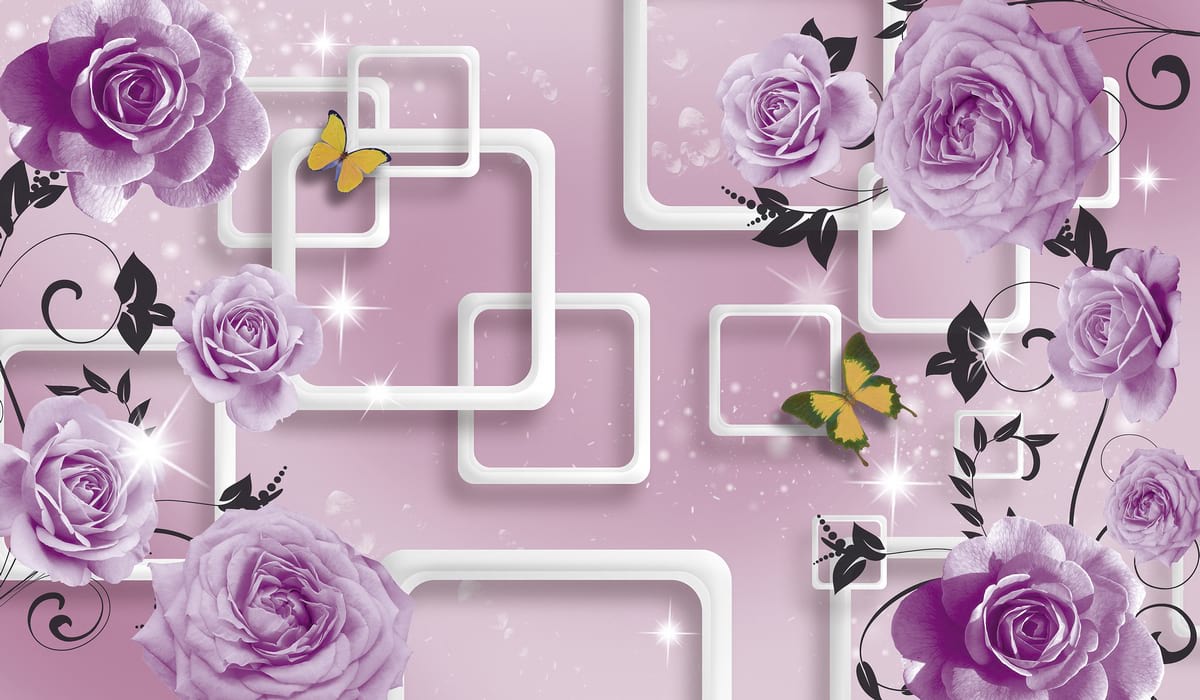 Фотообои Кубы и розы 3Д ( 21093 )Стоимость зависит от размеров