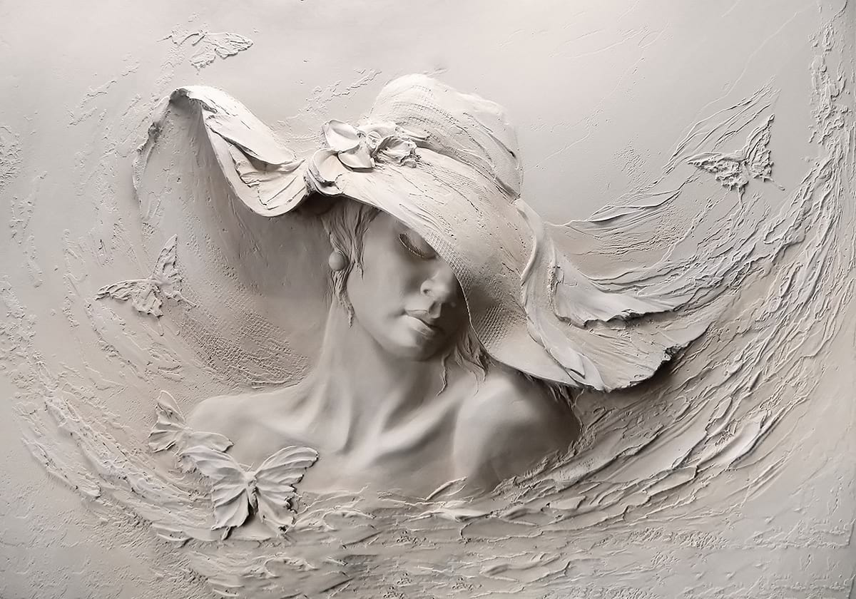 Фотообои Барельеф девушка в шляпе ( 21100 )Стоимость зависит от размеров