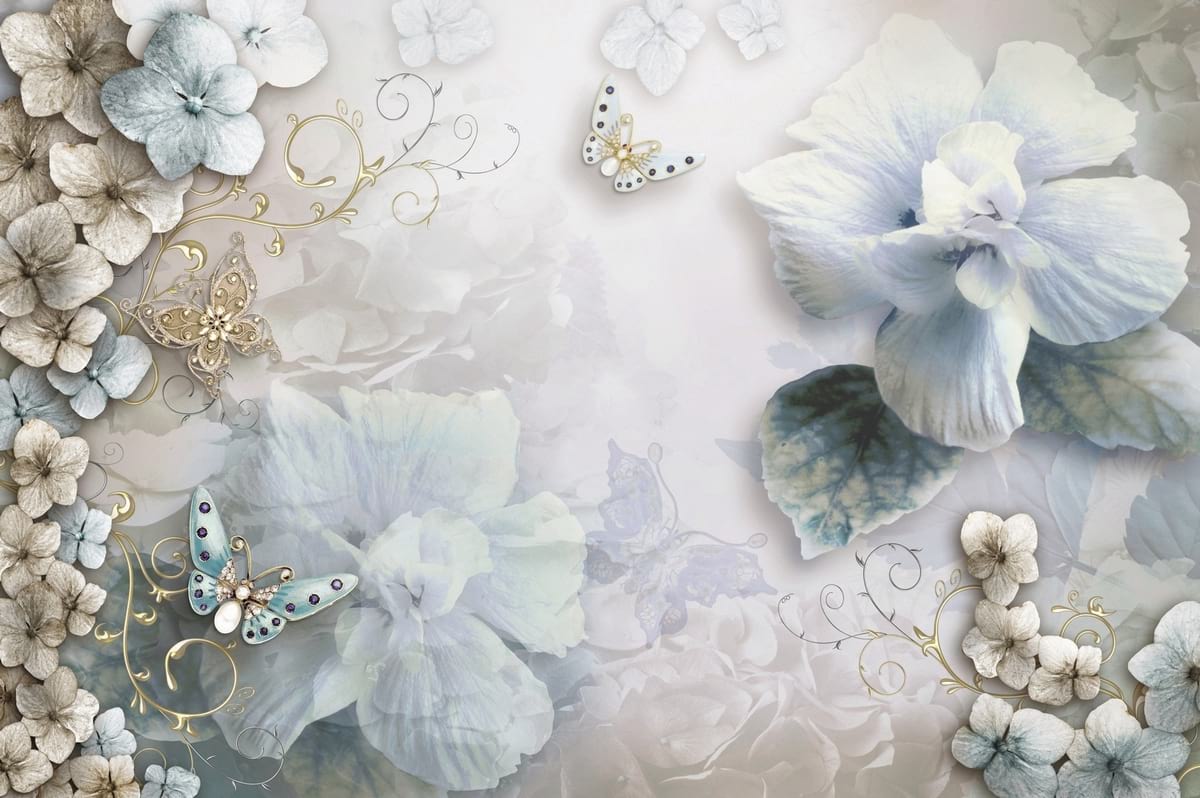 Фотообои Элегантные цветы и бабочки ( 21286 )Стоимость зависит от размеров