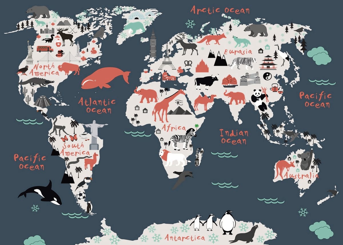 Фотообои Карта животных мира ( 26339 )Стоимость зависит от размеров