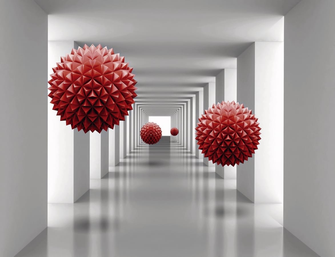 Фотообои Красные сферы в коридоре ( 21460 )Стоимость зависит от размеров