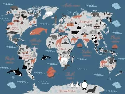 Фотообои Географическая карта животных ( 26064 )Стоимость зависит от размеров