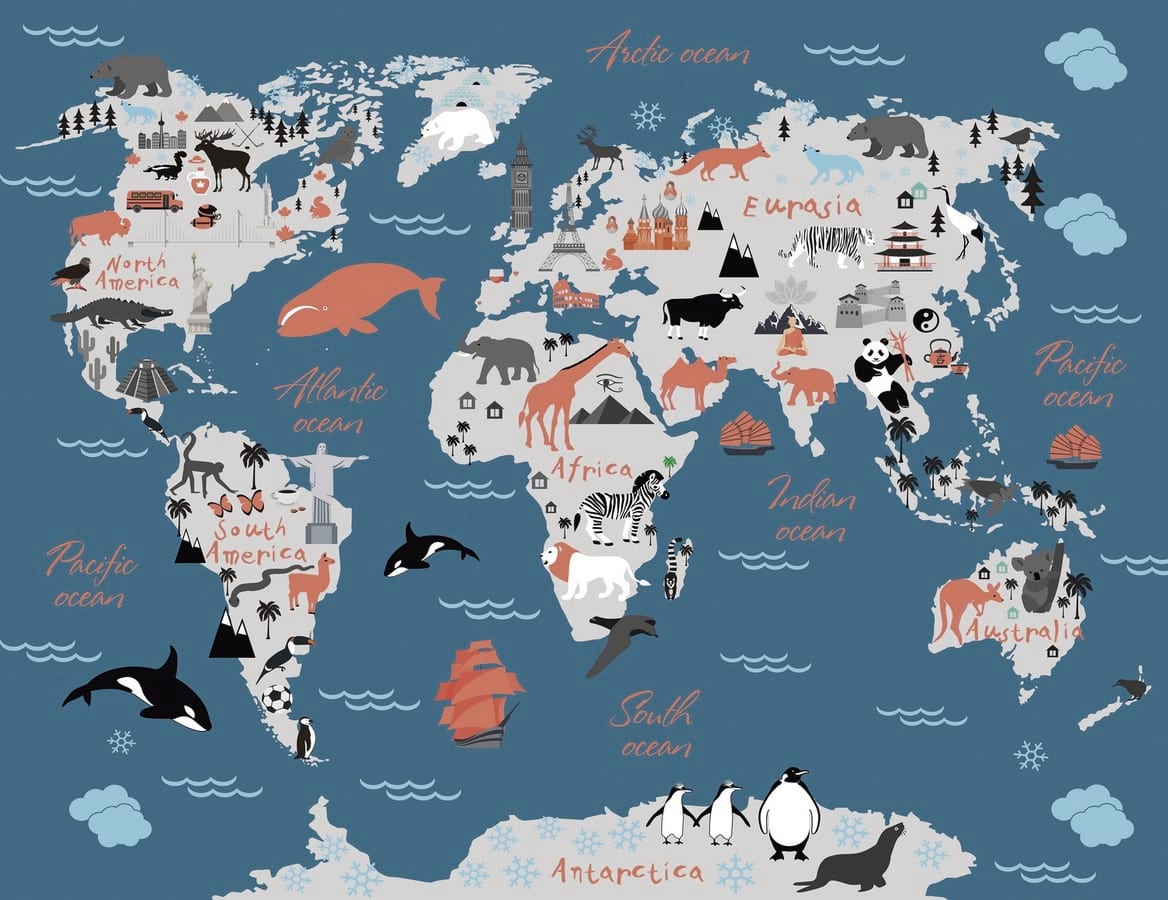 Фотообои Развивающая карта мира ( 26897 )Стоимость зависит от размеров