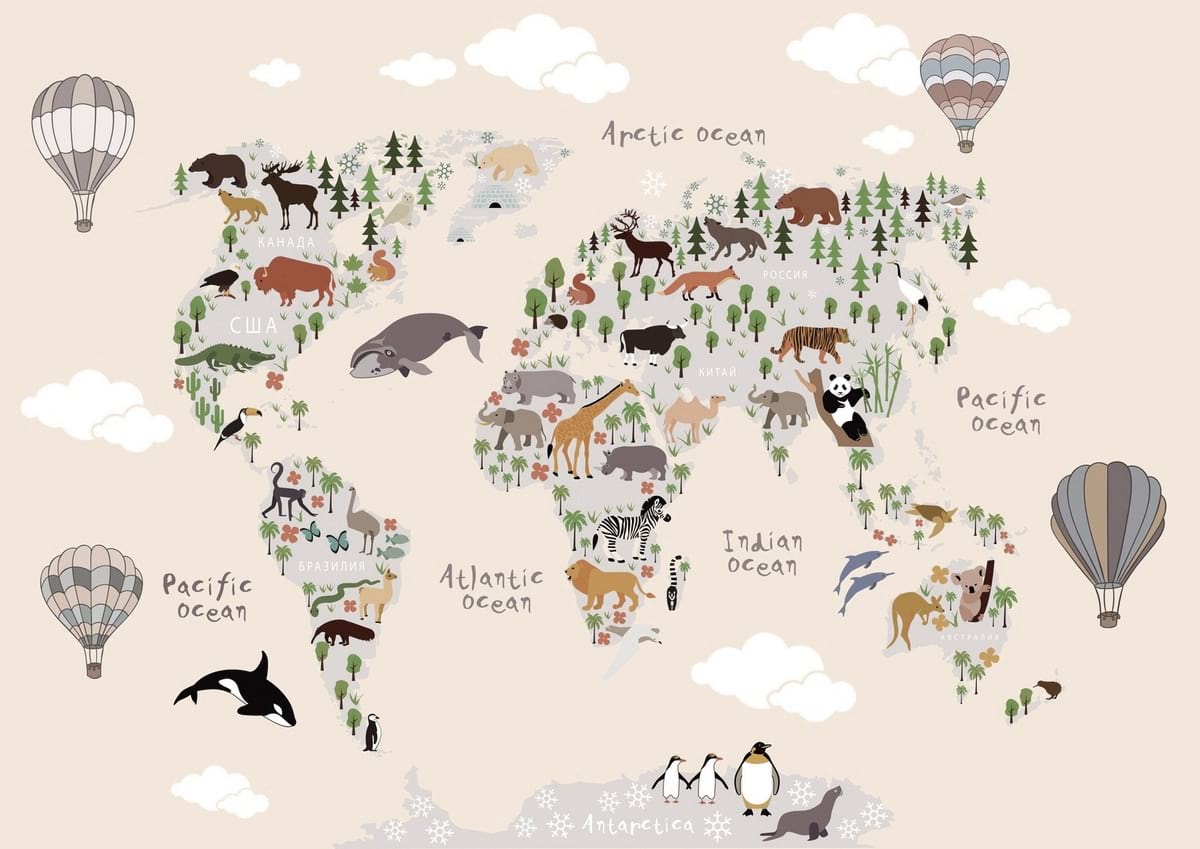 Фотообои Карта животных мира ( 26339 )Стоимость зависит от размеров