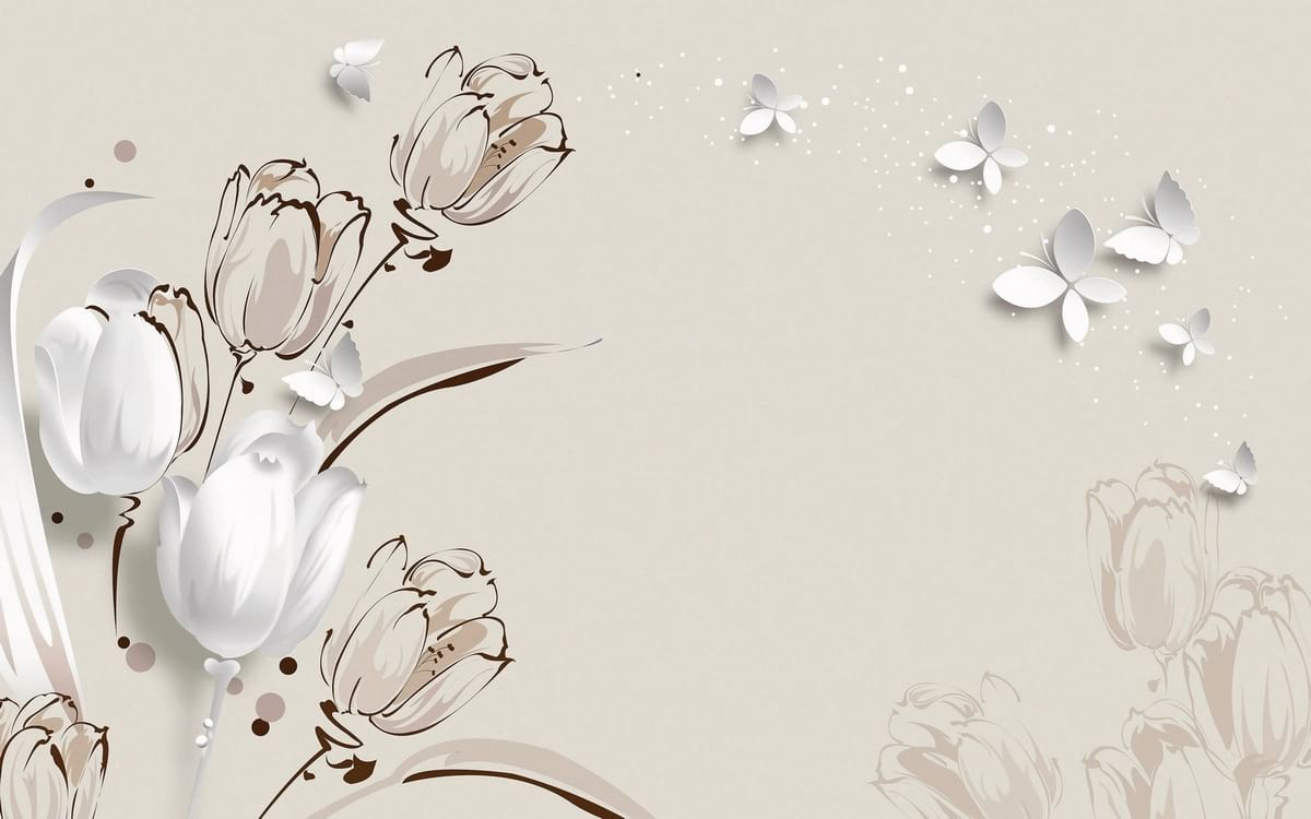 Фотообои Тюльпаны и бабочки 3Д ( 21574 )Стоимость зависит от размеров