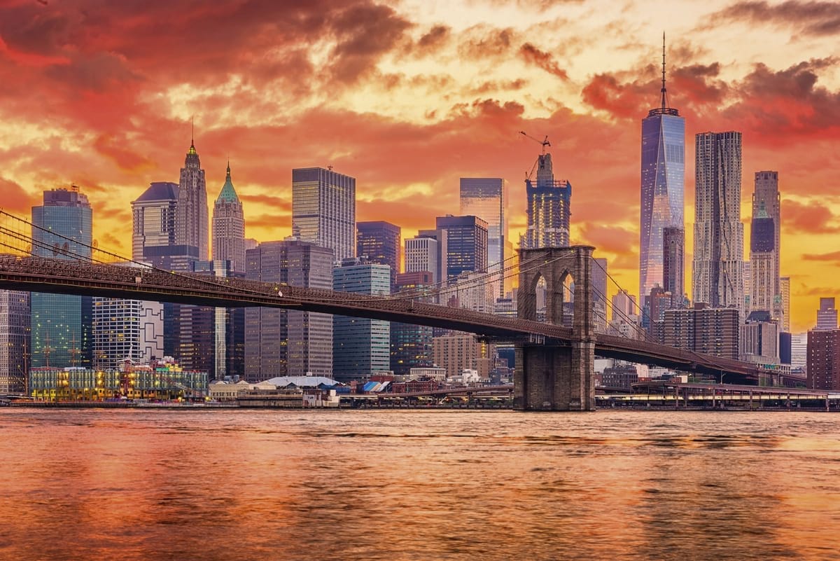 Фотообои Оранжевый закат в Нью-Йорке ( 21669 )Стоимость зависит от размеров
