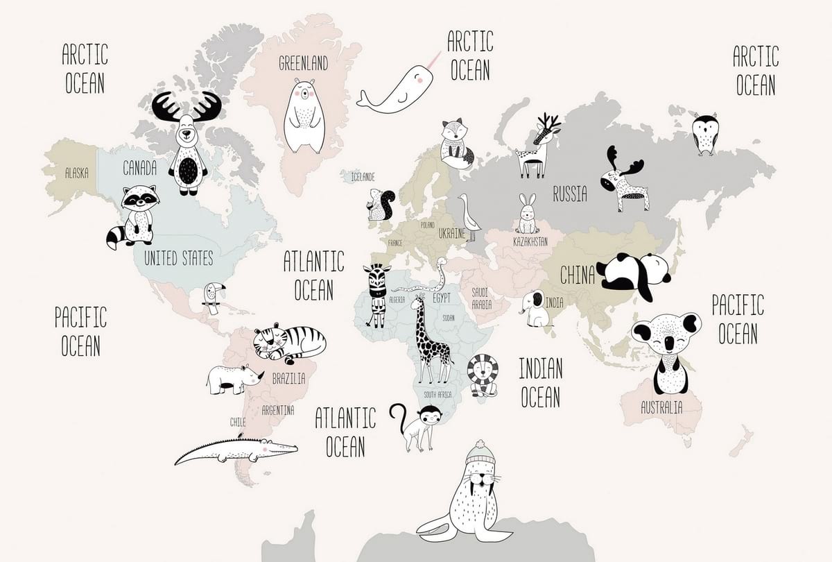 Фотообои Карта животных мира ( 26339 )Стоимость зависит от размеров