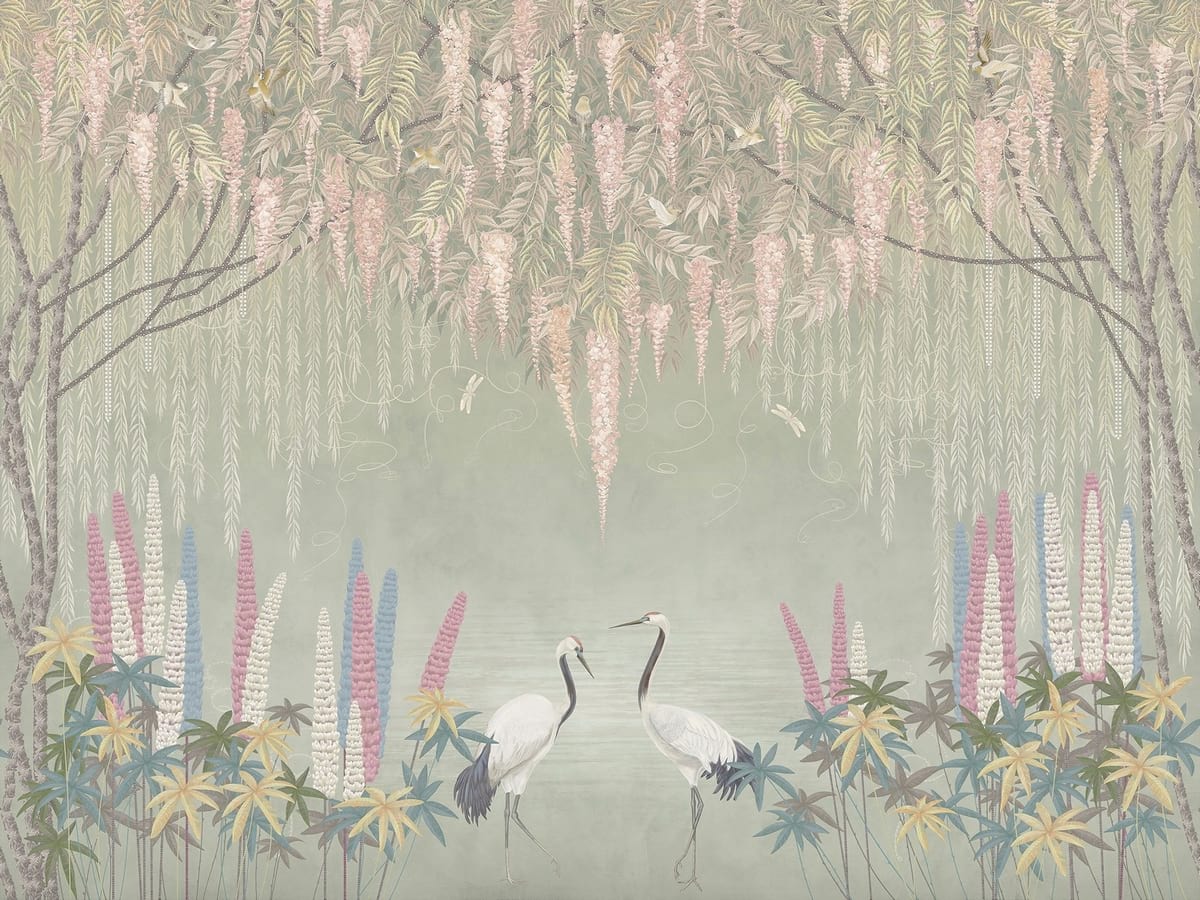 Фотообои Журавли в саду с глициниями ( 23510 )Стоимость зависит от размеров