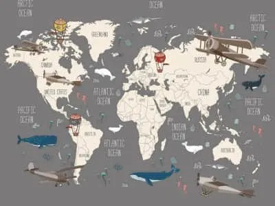 Фотообои Карта с животными и самолётами ( 23698 )Стоимость зависит от размеров