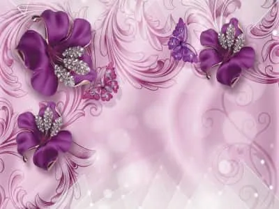 Фотообои Фиолетовые сверкающие цветы 3Д ( 23866 )Стоимость зависит от размеров