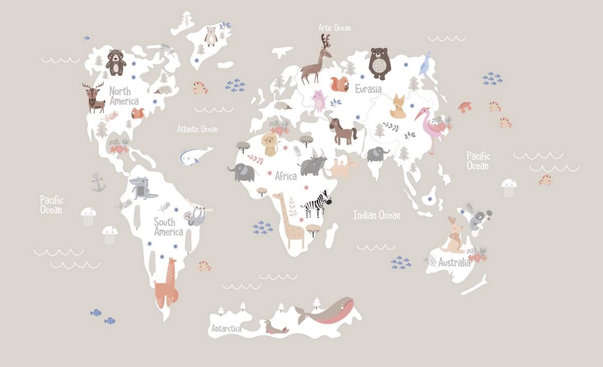 Фотообои Карта с животными ( 25640 )Стоимость зависит от размеров