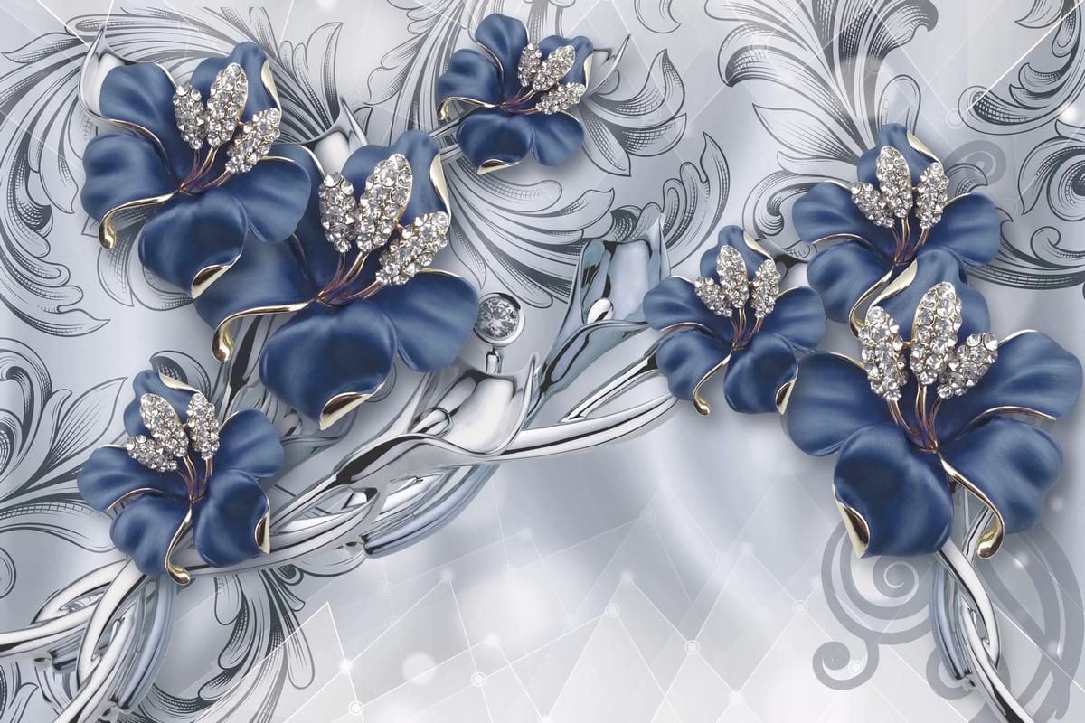 Фотообои Синие цветы в алмазах ( 23869 )Стоимость зависит от размеров