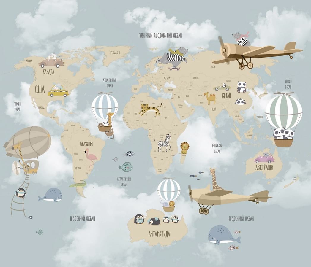 Фотообои Карта со зверушками, УКР ( 24450 )Стоимость зависит от размеров