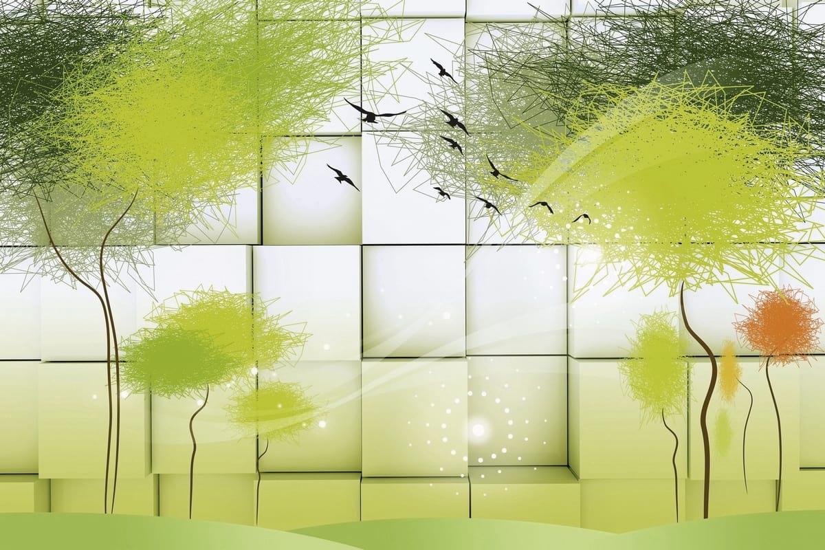 Фотообои Кубы и абстрактные деревья ( 24130 )Стоимость зависит от размеров
