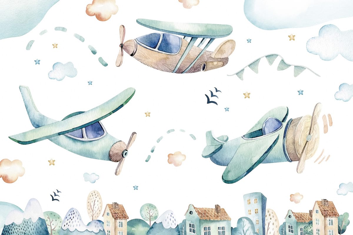 Фотообои Самолеты над домиками ( 24386 )Стоимость зависит от размеров
