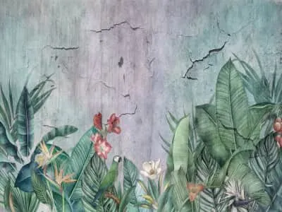 Фотообои Зелёный попугай в листьях ( 23997 )Стоимость зависит от размеров