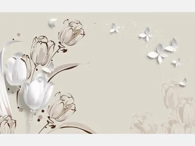Фотообои Тюльпаны и бабочки 3Д ( 21574 )Стоимость зависит от размеров