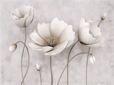 Фотообои Белые маки 3Д ( 26282 )Стоимость зависит от размеров