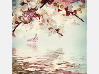 Фотообои Цветущая вишня над водой ( 24887 )Стоимость зависит от размеров