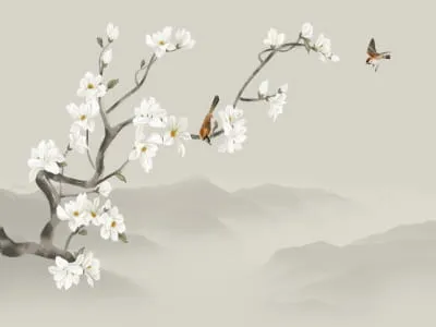 Фотообои Птицы в цветущем саду ( 25234 )Стоимость зависит от размеров