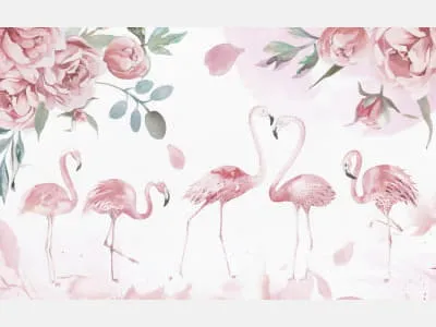 Фотообои Розовые фламинго в цветах ( 24830 )Стоимость зависит от размеров