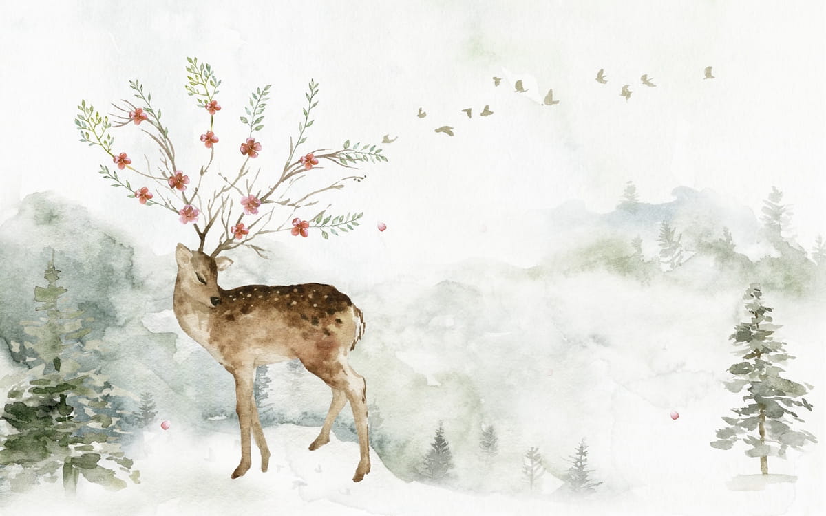 Фотообои Олени и цветочный венок ( 25426 )Стоимость зависит от размеров