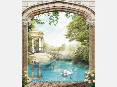Фотообои Солнечный пруд с лебедями ( 24920 )Стоимость зависит от размеров