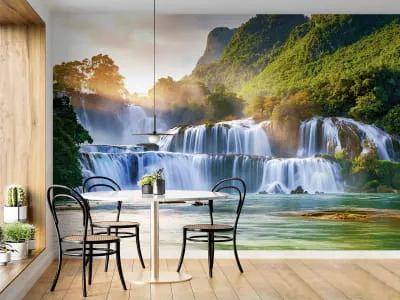 Фотообои Лучи солнца над водопадом ( 24940 )Стоимость зависит от размеров