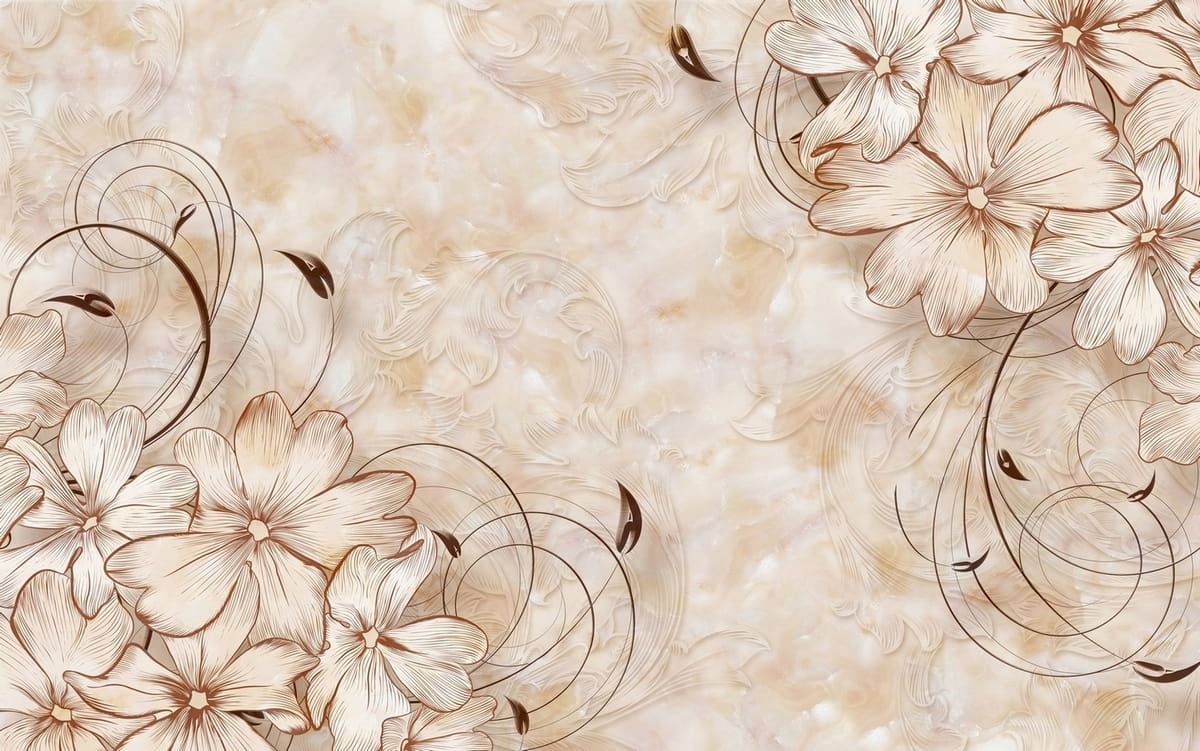 Фотообои Бежевые цветы на мраморе ( 24969 )Стоимость зависит от размеров