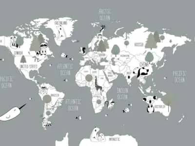 Фотообои Серая карта мира с животными ( 24075 )Стоимость зависит от размеров