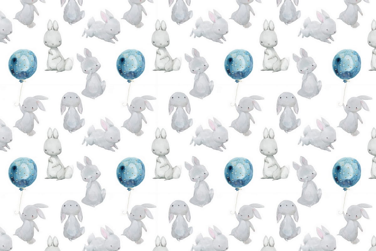 Фотообои Зайчата с синими шариками ( 25013 )Стоимость зависит от размеров