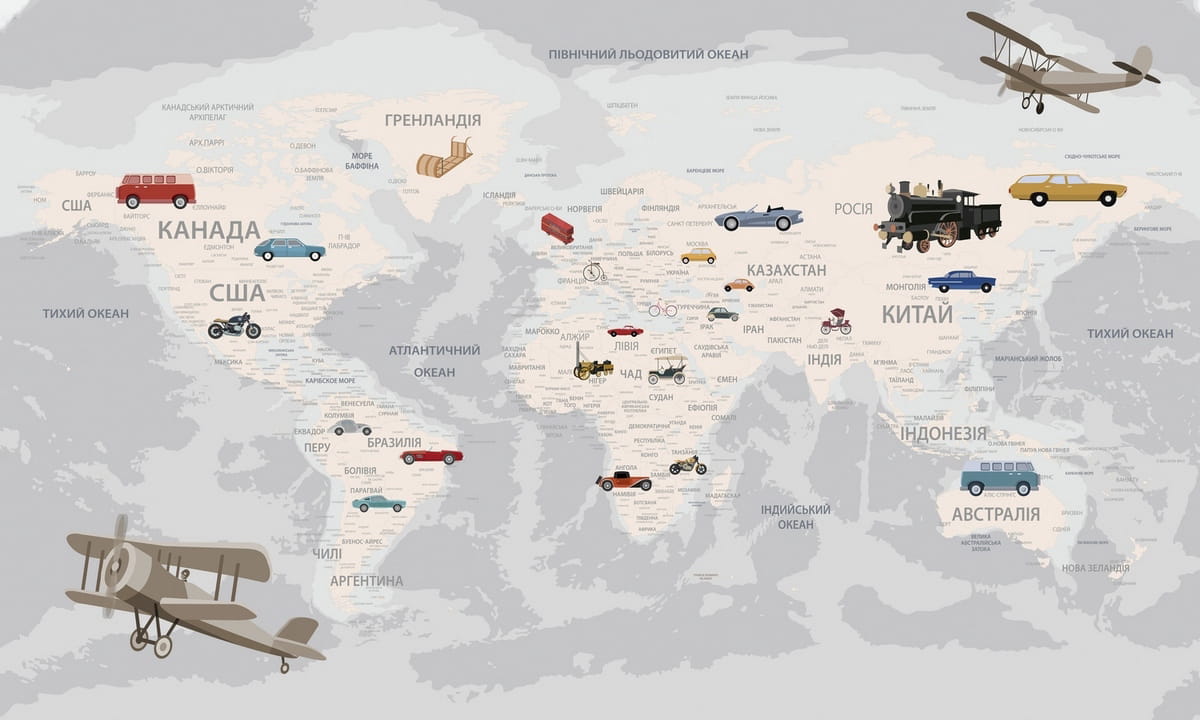 Фотообои Карта мира с транспортом ( 25051 )Стоимость зависит от размеров
