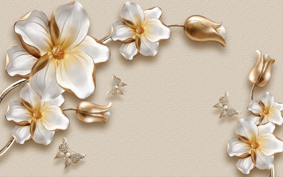 Фотообои Великолепные золотые цветы 3Д ( 25065 )Стоимость зависит от размеров