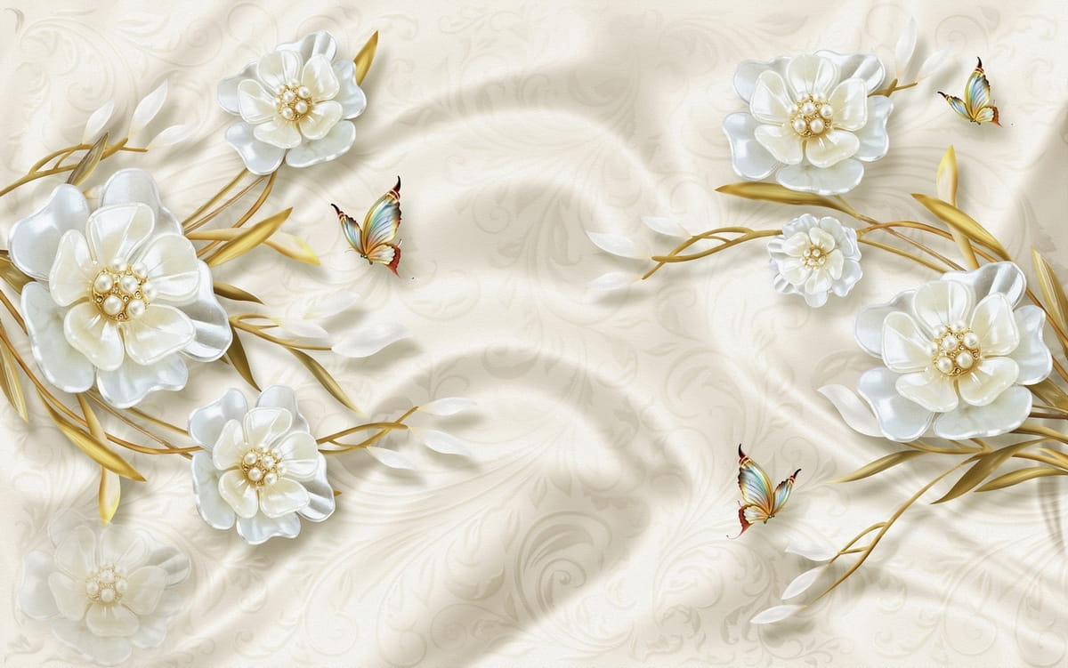 Фотообои Цветы белые 3Д ( 26790 )Стоимость зависит от размеров