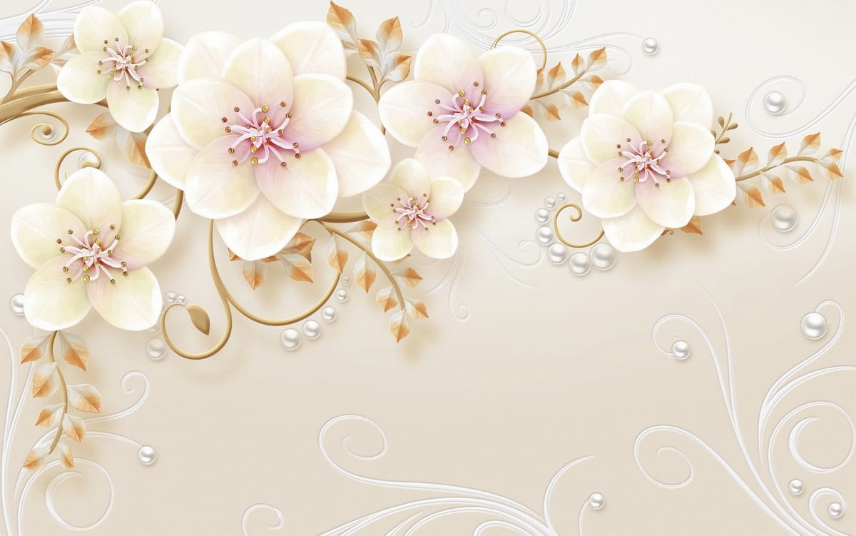 Фотообои Романтичные цветы с жемчугом ( 25082 )Стоимость зависит от размеров