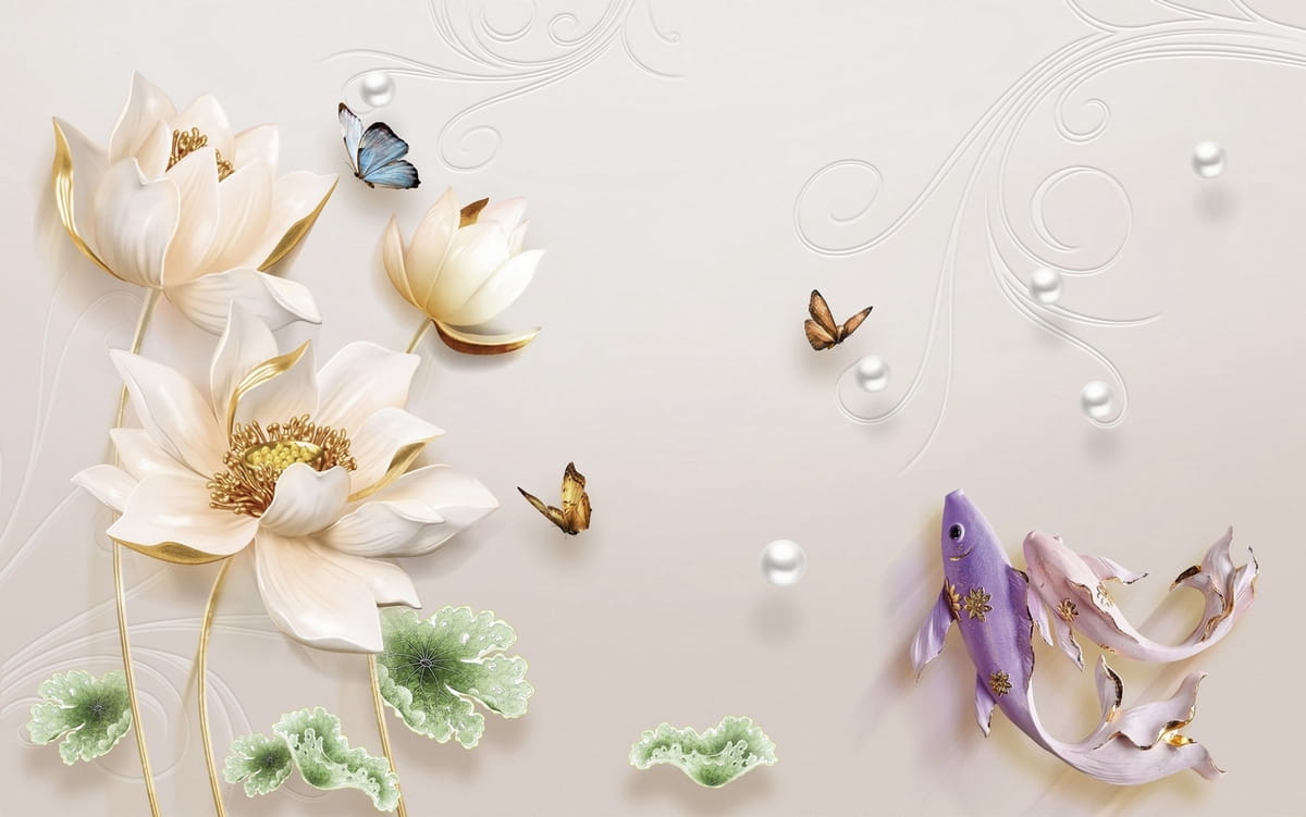 Фотообои Лотос с рыбками 3Д ( 25083 )Стоимость зависит от размеров
