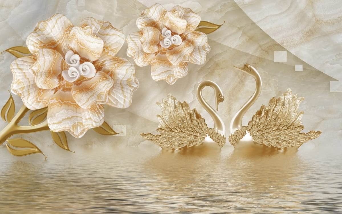Фотообои Изумительные цветы и лебеди ( 25101 )Стоимость зависит от размеров