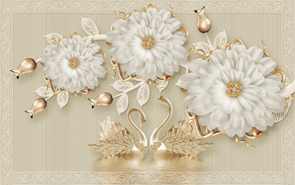 Фотообои Драгоценные цветы и лебеди ( 25103 )Стоимость зависит от размеров