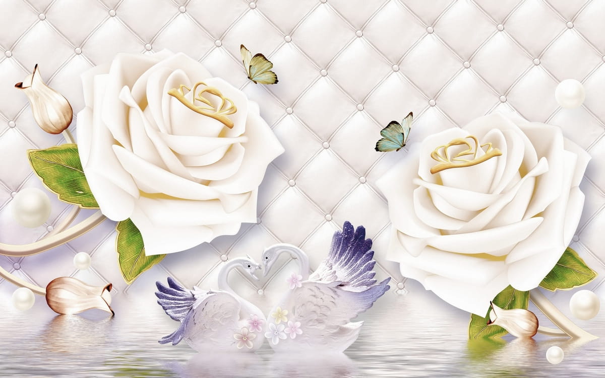 Фотообои Розы с лебедями 3Д ( 25107 )Стоимость зависит от размеров