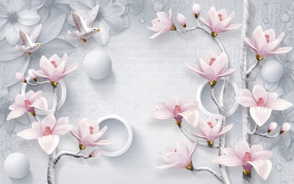 Фотообои Магнолии и голуби 3Д ( 25111 )Стоимость зависит от размеров