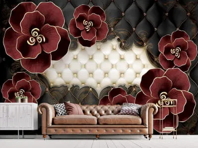 Фотообои Бордовые цветы 3Д ( 25112 )Стоимость зависит от размеров