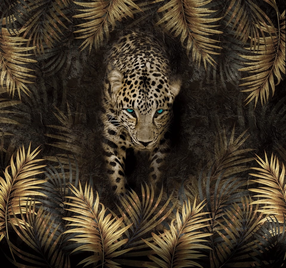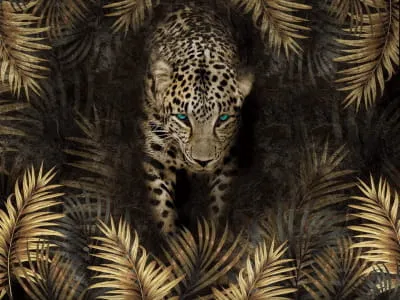 Фотообои Золотой ягуар в цветах ( 25225 )Стоимость зависит от размеров