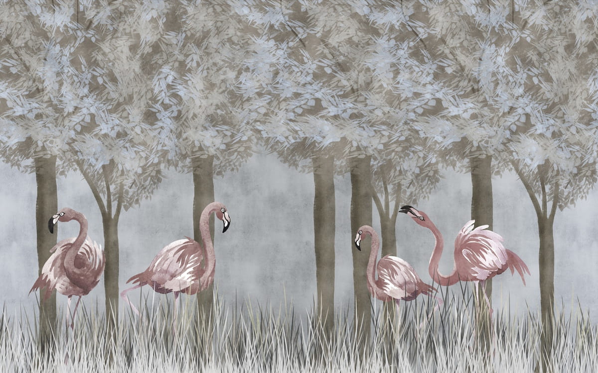 Фотообои Фламинго в саду ( 25381 )Стоимость зависит от размеров