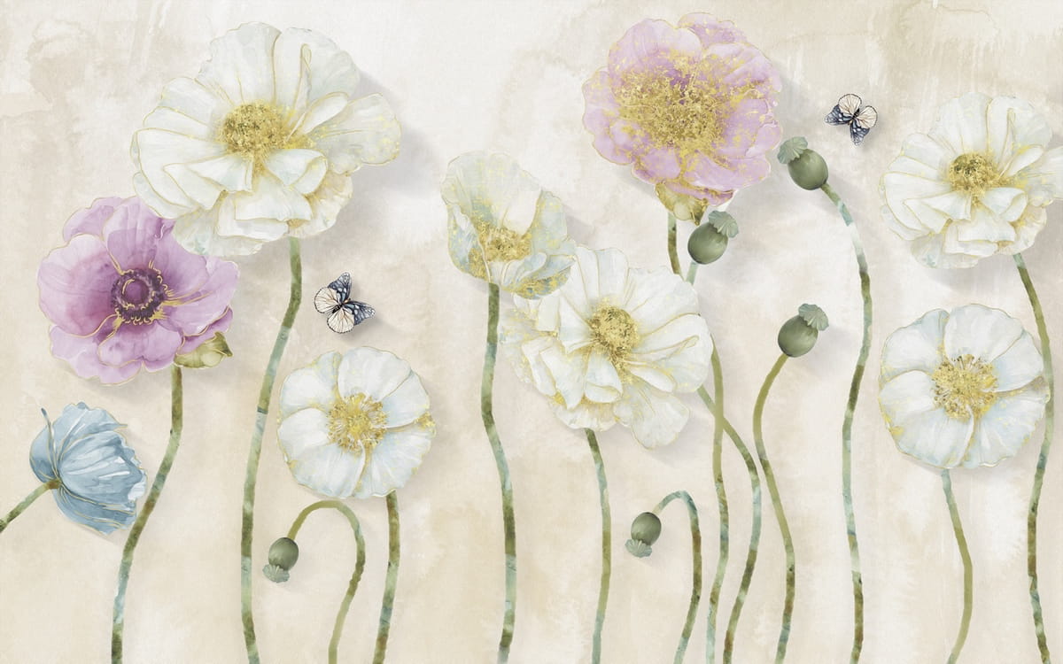 Фотообои Белые маки 3Д ( 26282 )Стоимость зависит от размеров