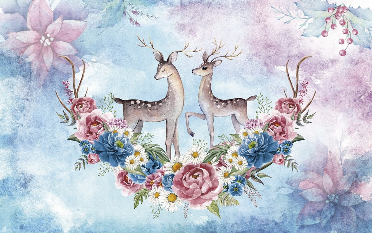 Фотообои Олени и цветочный венок ( 25426 )Стоимость зависит от размеров