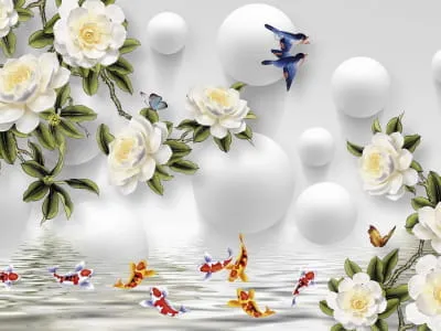Фотообои Блестящие розы и рыбки ( 25045 )Стоимость зависит от размеров