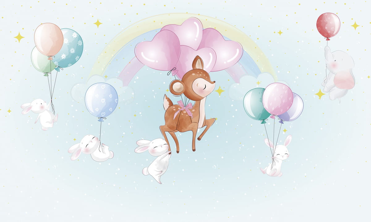 Фотообои Зайцы на воздушных шарах ( 26902 )Стоимость зависит от размеров