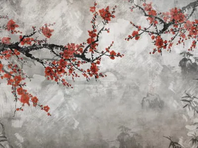 Фотообои Красная сакура ( 26321 )Стоимость зависит от размеров