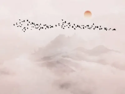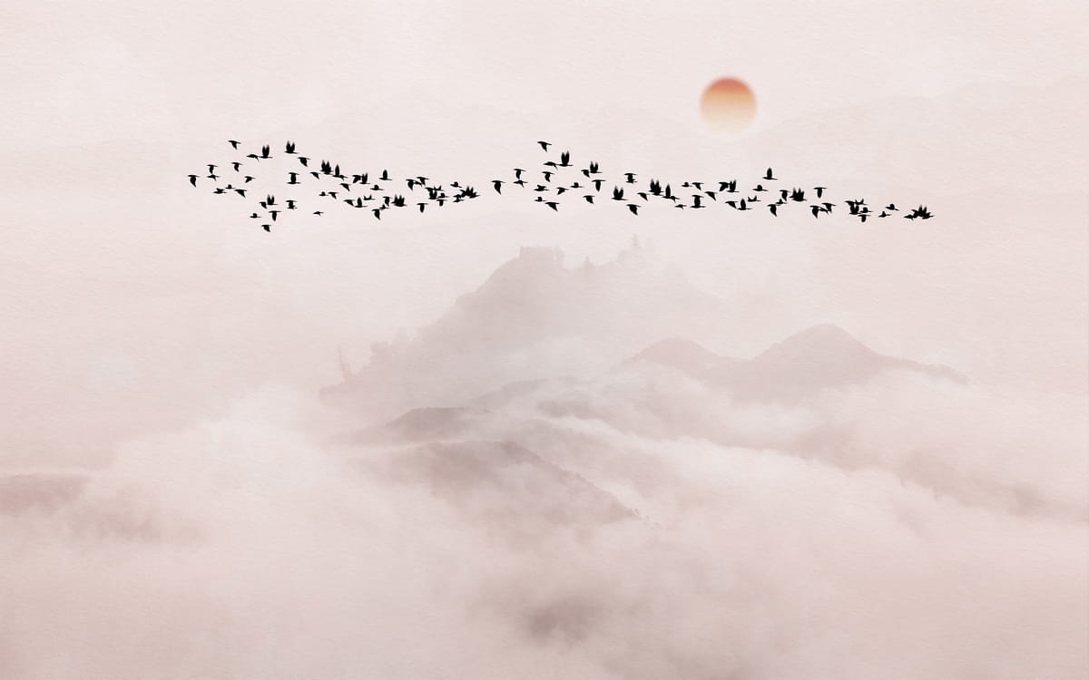 Фотообои Стая птиц на закате ( 26532 )Стоимость зависит от размеров